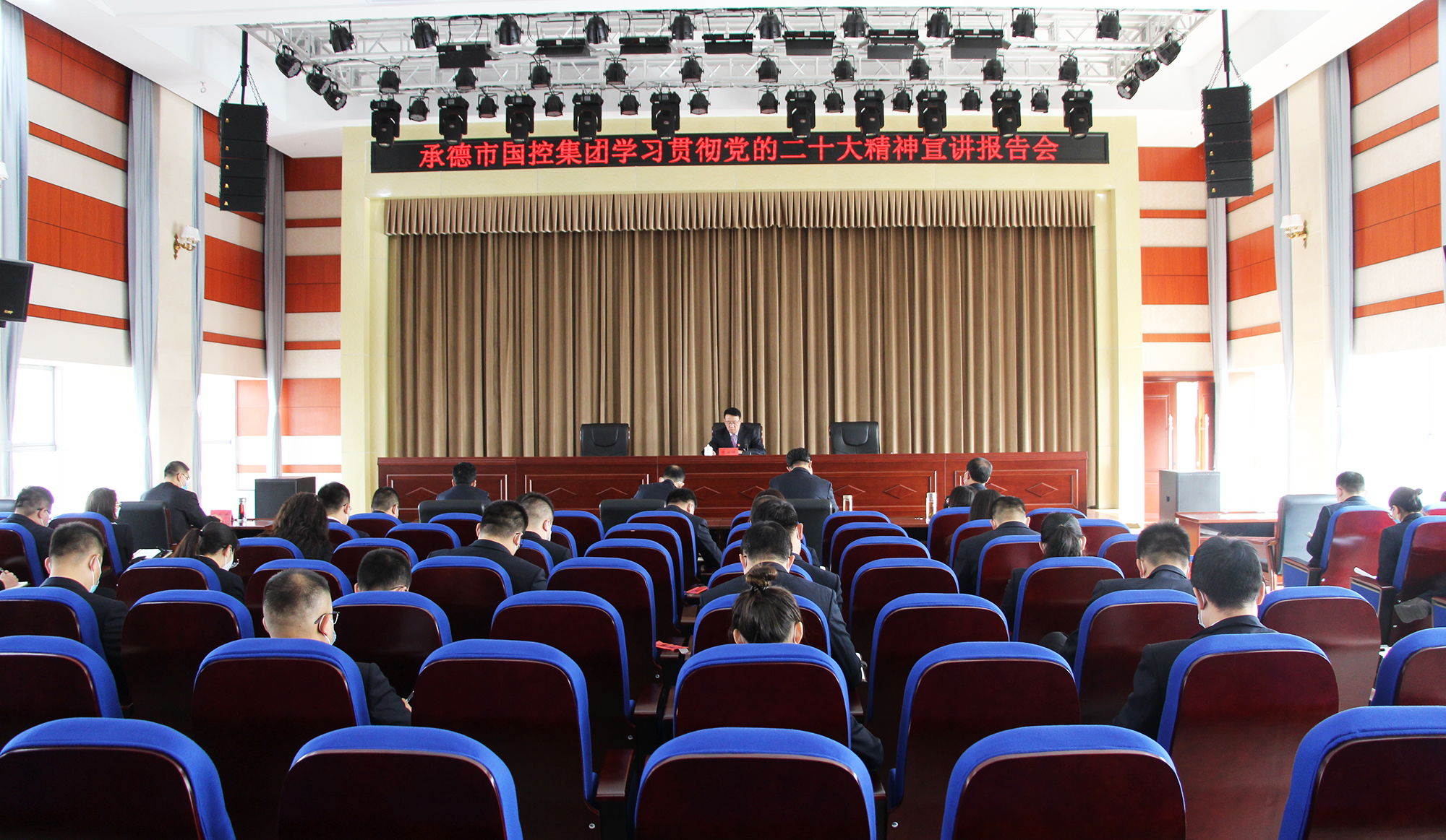 宣讲报告会由集团公司党委副书记、总经理徐俊儒同志主持。集团公司全体班子成员、部室及实际控制子负责人、职工代表等参加报告会。