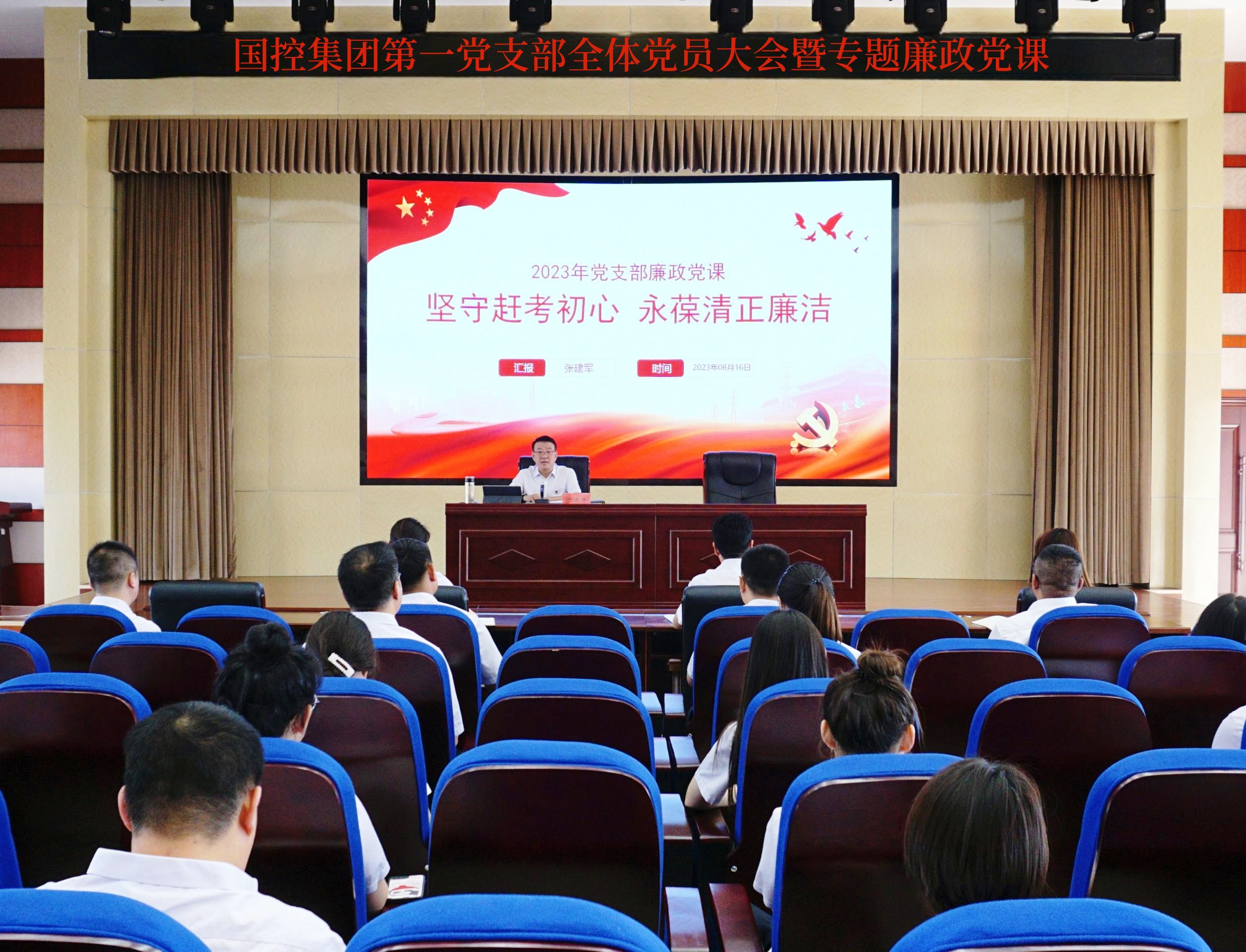 6月16日上午,乐动平台第一党支部召开全体党员大会暨专题廉政党课。集团公司党委书记、董事长张建军出席会议并作廉政党课。党委委员、纪委书记房宝轩主持会议并作廉政党课,一支部全体党员参加了会议。