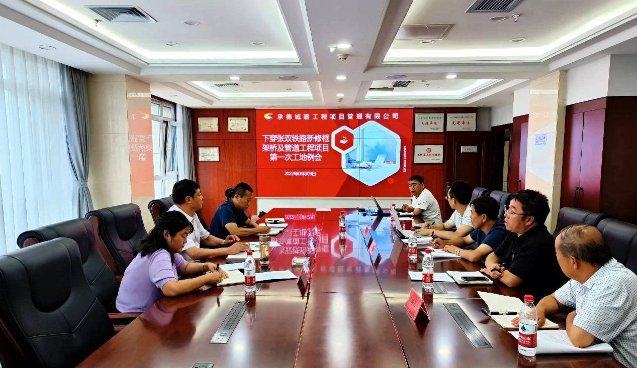2022年8月9日上午,承德市国瑞置业有限公司在国控大厦十二层第一会议室组织召开下穿张双铁路新修框架桥及管道工程项目第一次例会。市乐动平台总经理徐俊儒、国瑞置业公司董事长胡杰出席会议。